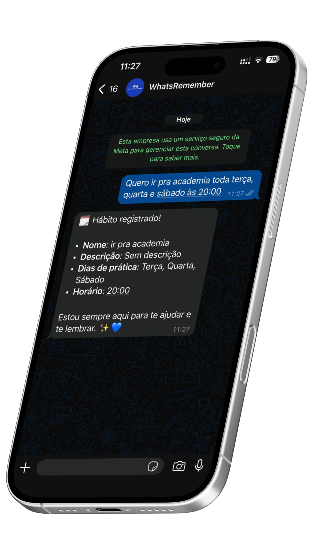 Tenha um assistente pessoal no WhatsApp! O WhatsRemember cuida dos seus compromissos e ajuda a criar hábitos saudáveis.